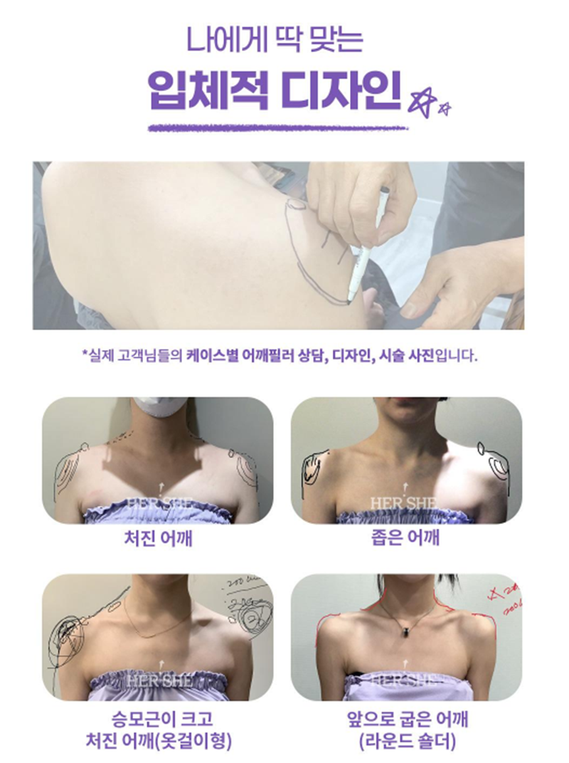 어깨필러 상담 전 체크해야 할 5가지 어깨라인은 생각보다 인상에 큰 영향을 주는 부위입니다. 쇄골에서 어깨로 이어지는 곡선, 목과 연결되는 각도에 따라 상체 비율이 달라 보일 수 있습니다. 최근 운동만으로 보완이 어려운 경우 어깨필러 상담을 고민하는 분들이 늘고 있습니다. 하지만 단순히 “직각 어깨를 만들고 싶다”는 이유만으로 결정을 서두르기보다는, 몇 가지 중요한 체크 포인트를 먼저 확인하는 것이 필요합니다. 오늘은 허쉬성형외과 기준으로 어깨필러 상담 전 꼭 확인해야 할 5가지를 정리해드립니다. 1. 내 어깨가 좁아 보이는 이유는? 어깨가 좁아 보이는 이유는 단순하지 않습니다. 1. 쇄골 길이 차이2. 송모근 발달 정도3. 어깨 뼈 위치4. 체지방 분포5. 자세 습관등 여러 요소가 영향을 줍니다. 따라서 무조건 볼륨을 더하는 방식이 아니라 원인이구조적인지, 근육 문제인지, 체형 균형 문제인지 먼저 확인하는 과정이 중요합니다.2. 어깨필러가 적합한 체형인지 확인하기 어깨필러는 주로 쇄골 라인이 약해 보이는 경우, 어깨 상부가 움푹 들어가 보이는 경우, 직각 느낌이 부족해 상체가 왜소해 보이는 경우 상담 대상이 될 수 있습니다. 하지만 근육이 과도하게 발달한 경우에는 승모근 보톡스가 먼저 고려될 수 있고, 전체 체형 균형이 필요한 경우에는 다른 접근이 더 적합할 수 있습니다. 3. 과한 볼륨보다 중요한 "자연스러운 연결" 어깨필러는 단순히 넓게 만드는 시술이 아닙니다. 쇄골에서 어깨까지 부드럽게 이어지는 라인, 목과 어깨 각도의 균형, 좌우 대칭이 더 중요합니다. 과도한 볼륨은 오히려 부자연스러운 인상을 줄 수 있기 때문에 정밀한 디자인과 용량 조절이 필요합니다. 4. 유지기간과 개인차 이해하기 어깨필러는 사용하는 필러 종류와 개인의 대사 속도에 따라 유지 기간에 차이가 있습니다. 또한 운동 습관, 체중 변화, 자세에 따라서도 유지 양상이 달라질 수 있습니다. 따라서 상담 시에는 기대하는 변화 정도와 유지에 대한 이해를 충분히 나누는 것이 중요합니다.